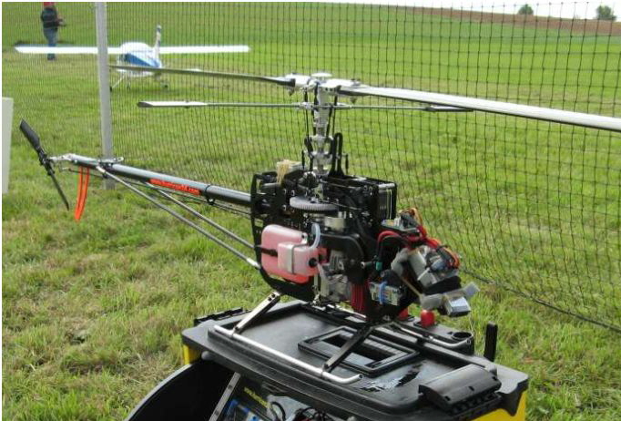 Der Heli hat ein Abfluggewicht von etwa 3,8kg incl. Sprit bei einen Rotordurchmesser von 1350mm.